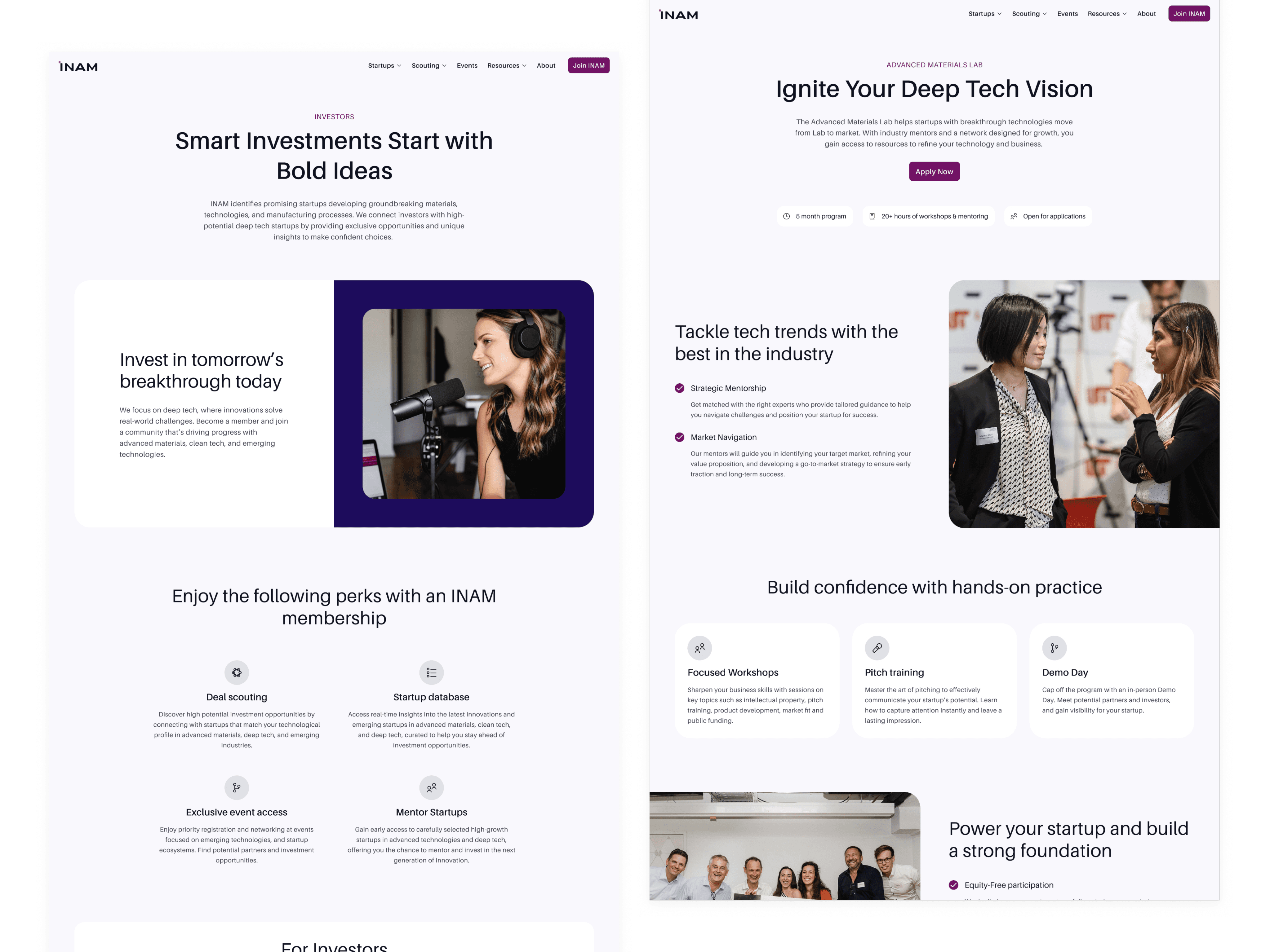 We transformed INAM’s website into a clear, user-focused platform that speaks directly to startups, corporates, and investors. The new information architecture simplifies navigation and highlights how INAM serves each audience.